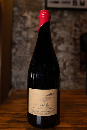 Crafted by Hannah and Raphaël using 100% Pinot Noir grapes from the single plot near Neuville-sur-Seine, the Côteaux Champenois Rouge En Val Lige 2022 by Domaine de Bichery is a special limited edition red wine. Vinification takes place in used barrels with no sulphites, preserving the wine's authenticity. The inviting aromatic profile features notes of cherries, small red fruits, and delicate florals, while the palate seamlessly combines the spicy character of Champagne with the fresh and fruity elegance of Burgundy. Only 799 bottles were produced, making this a truly unique and artisanal wine.